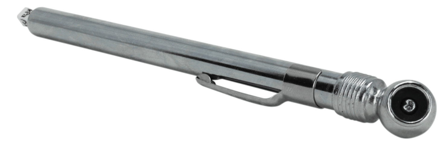 Pencil type tire gauge provides the finest in accurate, long life, trouble free performance...designed and constructed to provide the quality that means satisfaction in use and a level of excellence unsurpassed by any other manufacturer. Nylon indicator bar with red marker. 2 sides 5 to 50 psi in 1 lb. increments and 2 sides kilo Pascals (kPa) 40 to 350 in 10 kPa increments. Skin Pack.