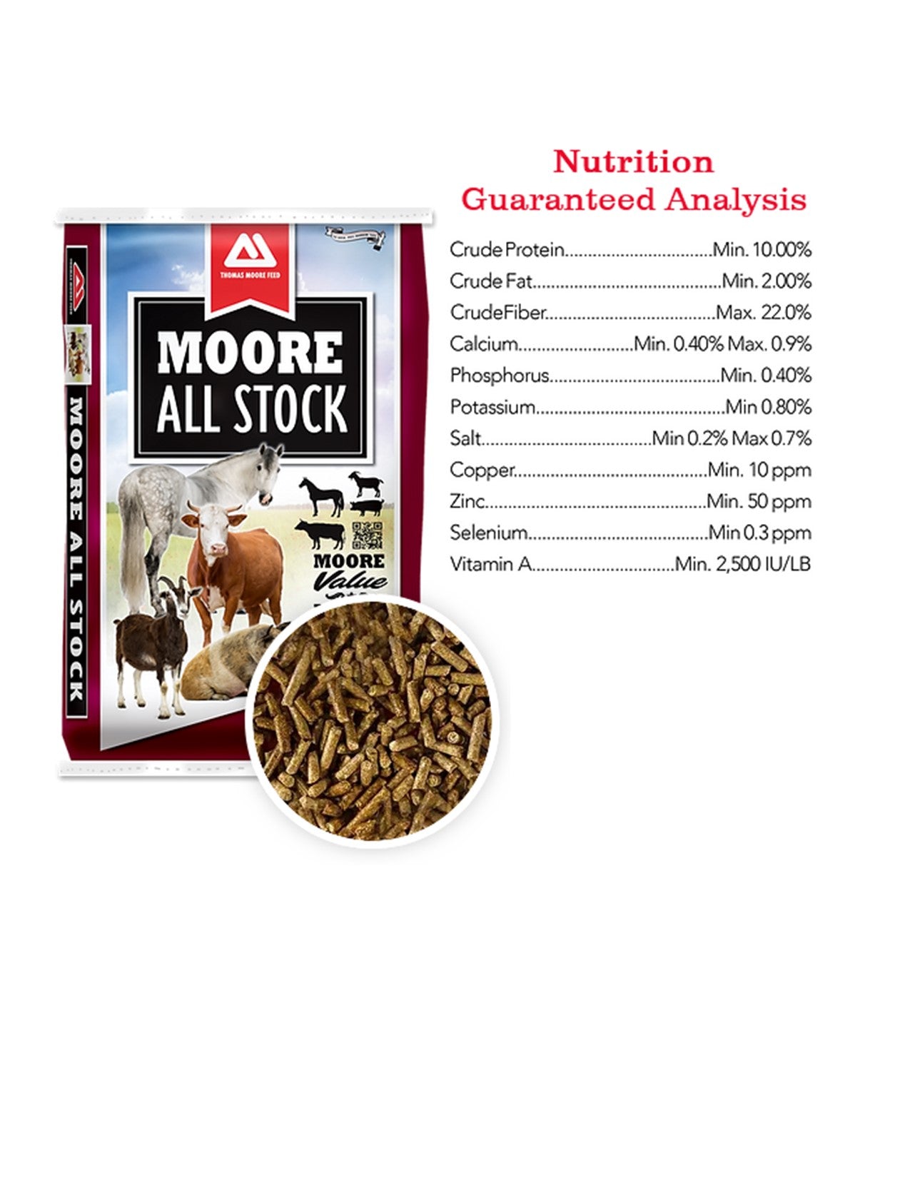 Thomas Moore 10% Super Sweet Pellets 50# feature a molasses-coated formulation that ensures palatability while delivering high-quality, cost-effective nutrition for livestock. With a guaranteed minimum of 10% crude protein and 2% crude fat, these pellets support muscle development and energy needs. The fiber content is carefully controlled at a maximum of 22% to aid digestion without compromising nutrient absorption. This product also supplies vital minerals including calcium (0.40–0.9%) for bone strength, phosphorus (0.40%) for metabolic functions, potassium (0.80%) to maintain electrolyte balance, and salt (0.2–0.7%) for proper hydration and cellular processes. Additionally, it contains trace minerals such as copper (10 ppm), zinc (50 ppm), and selenium (0.3 ppm) to support immune system function and overall health. Enhanced with a minimum of 2,500 IU per pound of vitamin A, these pellets contribute to good vision, reproductive health, and growth. Suitable for a variety of livestock, this feed provides a balanced, reliable nutrition source designed to optimize stock performance and well being.