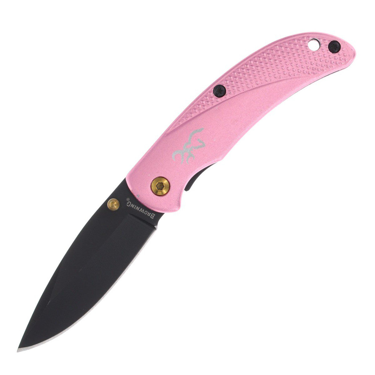 This compact Browning Prism III Pink Folding Knife packs a punch with a 3.25" closed length and sleek 2.25" black finish blade made from top-quality 7Cr17MoV stainless steel. The eye-catching pink anodized aluminum handle and handy thumb stud make it easy to use and carry. Perfect for everyday carry and outdoor adventures.