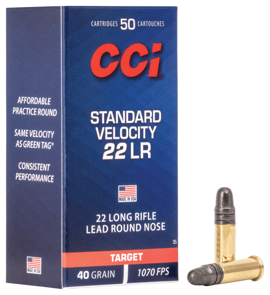 CCI Standard Velocity .22 LR 40 Grain Lead Round Nose Rimfire Ammo - 50 Rounds