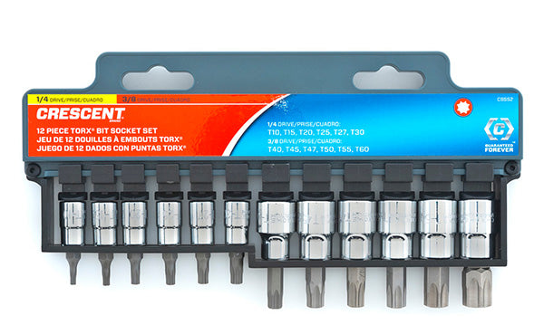 - 12pc ¼” and 3/8” Drive Torx® Socket Set