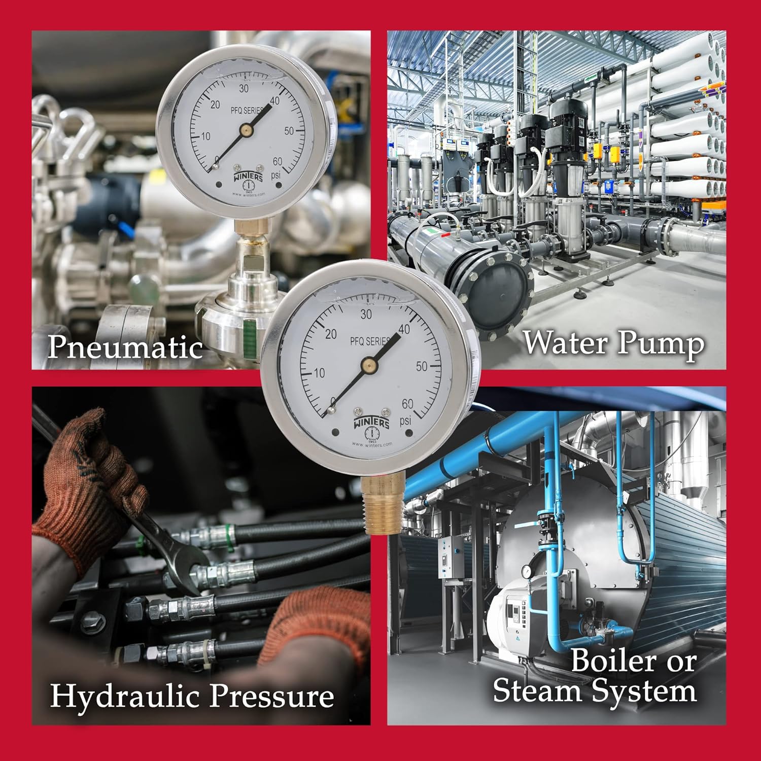- Circular dial is filled with glycerin and enclosed in a stainless steel 304 case for corrosion resistance