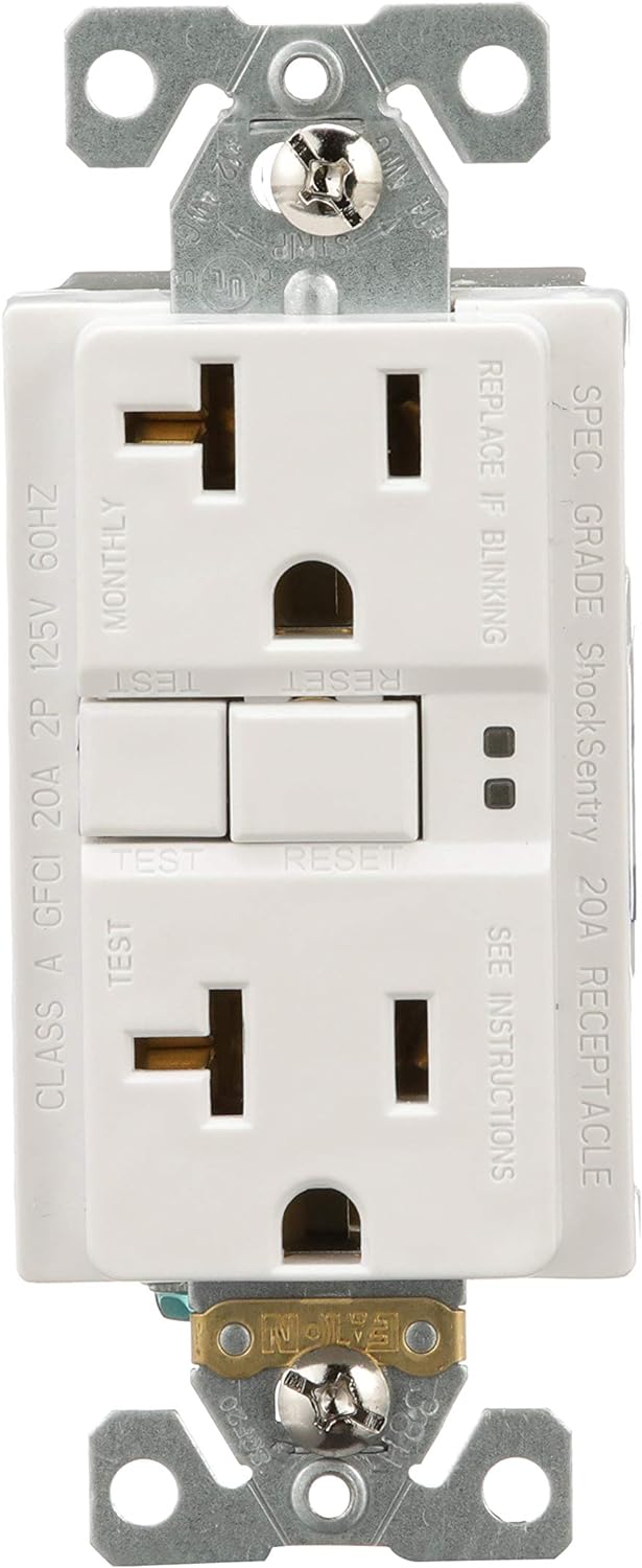 EATON SGF20W Arrow Hart Duplex Gfci Receptacle, 125 Vac, 20 A, 2 Pole, 3 Wire, White