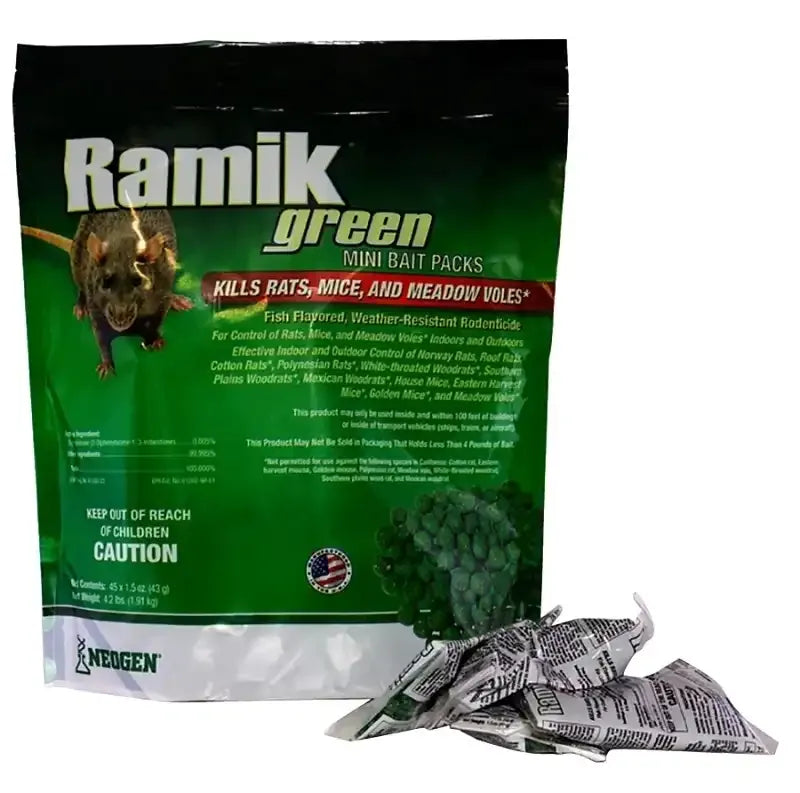 Neogen RODENTICIDE 45-Pack Ramik Rat and Mouse Bait Pail, Green, 4.2 LB, (04285)