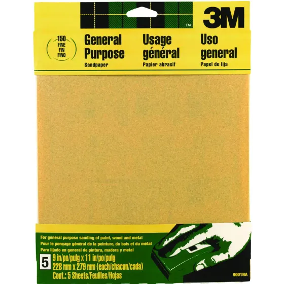 3M 9001NA Sand Blaster Aluminum Oxide Sandpaper Sheets, 150 Grit, 9 Inch By 11 Inch, 5 Pack