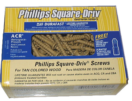 2" Phillips Square-Drive Screws, for Wood, Tan, FREE Phillips Square Drive Bit Enclosed, Exterior