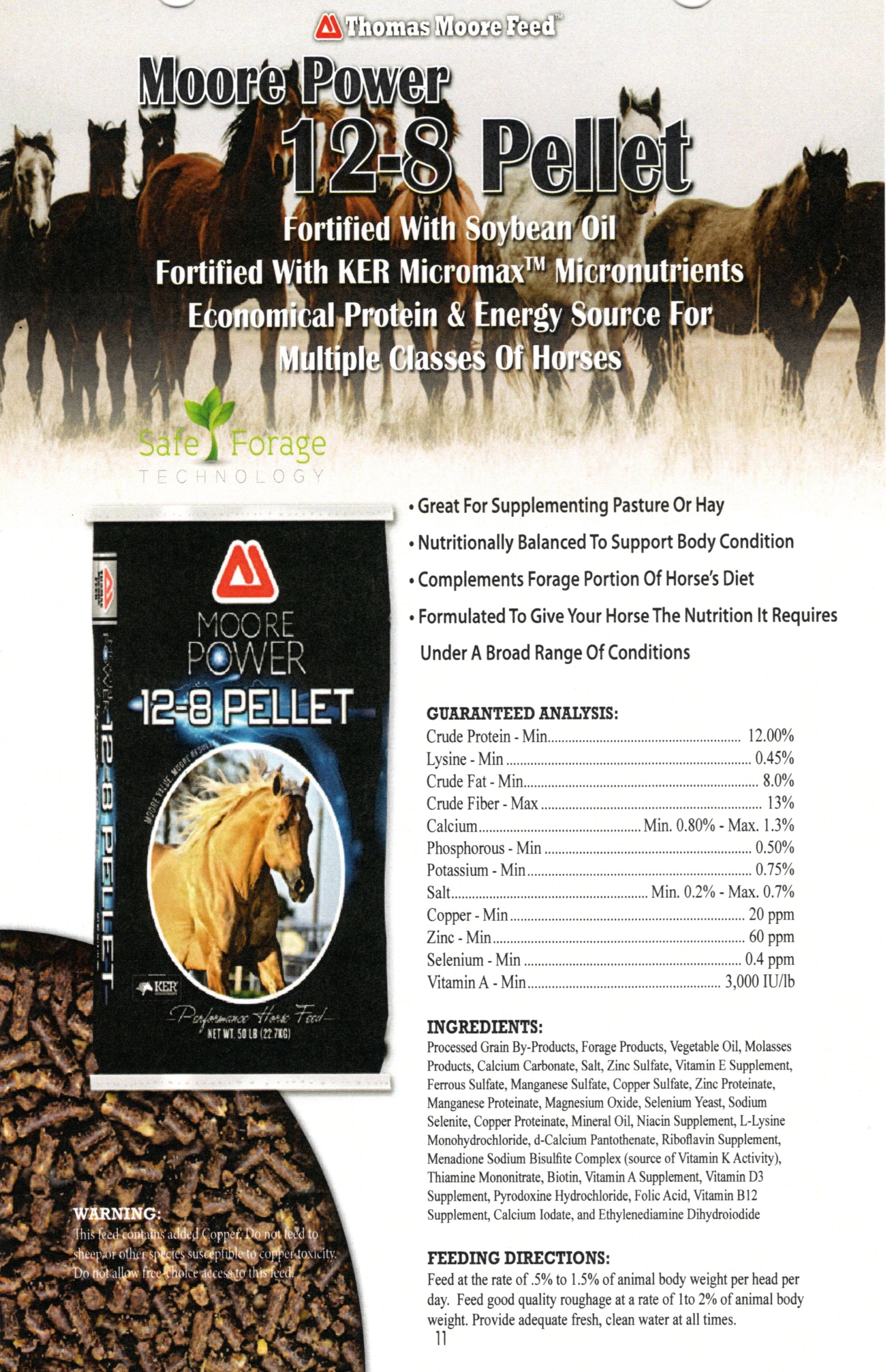 MOORE POWER 12-8 HORSE PELLET 50# - THOMAS MOORE