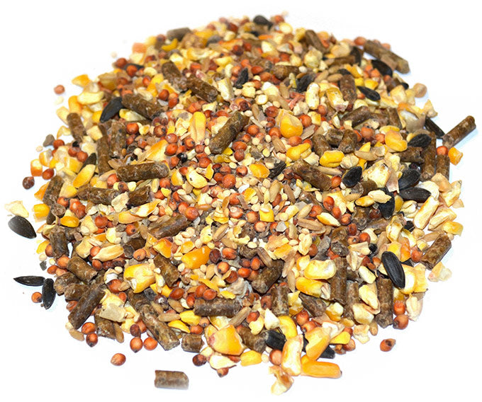 SCRATCH AND MOORE POULTRY COMPLETE 50# - THOMAS MOORE FEED is expertly formulated to meet the nutritional needs of both egg-producing and mature non-laying poultry. This balanced layer mix serves as an effective alternative to traditional layer pellets by combining five different grains with supplemental pellets, ensuring a well-rounded diet. The diverse grain composition encourages natural foraging and pecking behaviors, which can help improve overall bird welfare. Additionally, the formula is enriched with essential vitamins and minerals to support sustained health and vitality. The inclusion of oyster shell provides a bio available source of calcium, vital for strong eggshell formation and optimal egg production. This comprehensive feed supports the nutritional demands of your flock while promoting natural feeding habits and consistent laying performance.