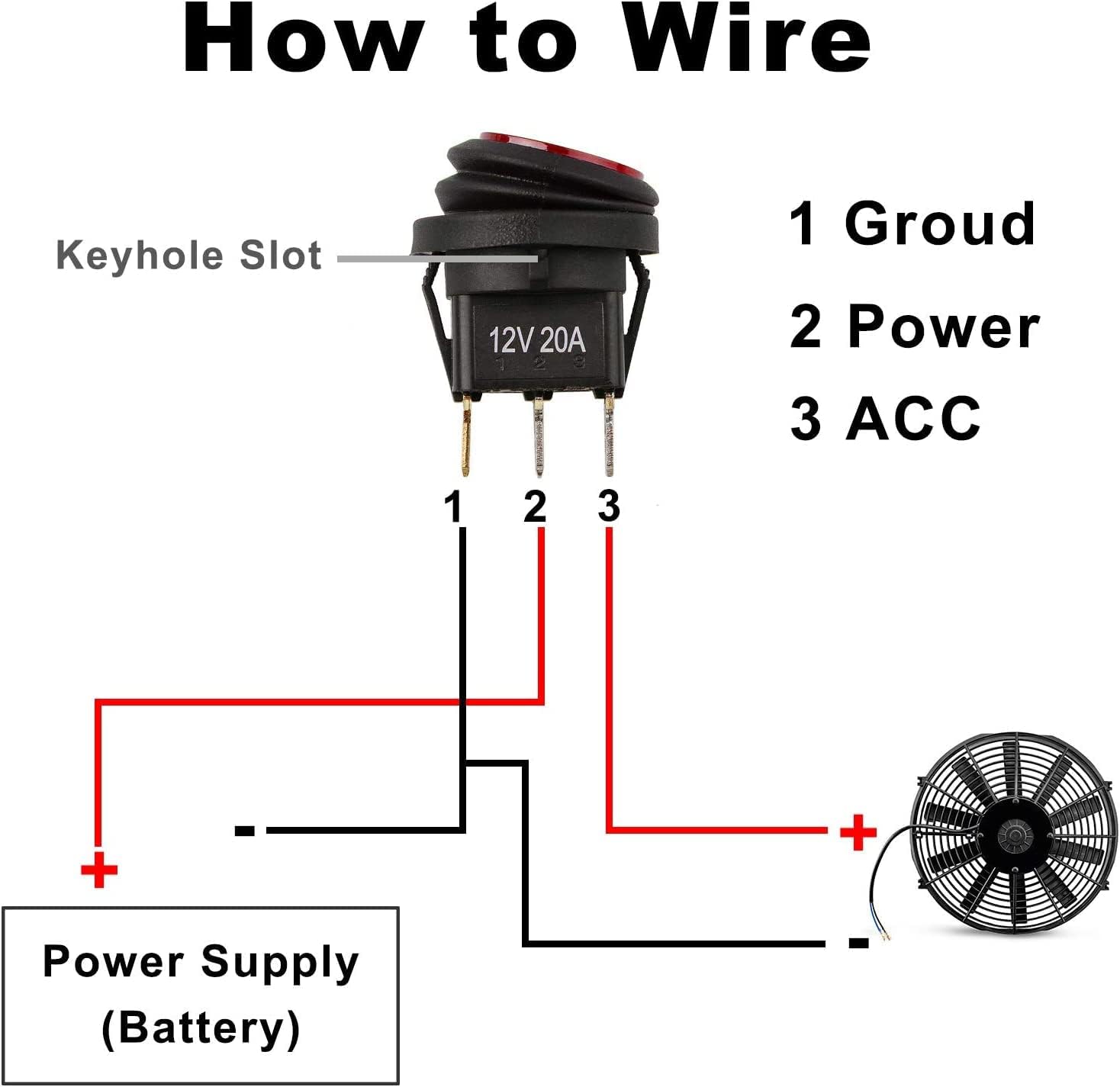 This 12V toggle switch is designed for car, truck, and RV use. Its waterproof feature makes it ideal for use on boats and marine vehicles as well. The red LED light adds convenience for easy visibility in any lighting condition. Its simple SPST design with 3 pins fits standard 20mm mounting holes.