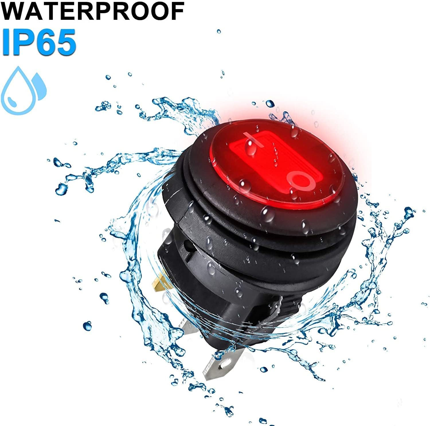 12V Car Truck RV Rocker Round Toggle Switch LED On-Off Control,Waterproof On/Off Boat Marine Auto Rocker Switch SPST 3 Pins for 20mm Mounting Hole (Red)