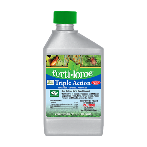 New formulation. Use on fruits, herbs, nuts, spices, vegetables and roses, flowers and shrubs. Provides quick and more complete control. Acts as an "exciter" to flush insect pests out of hiding and into direct contact with spray residues. Controls aphids, spider mites, scale, mealybugs, beetles, loopers, leaf miners, leaf rollers, armyworms, webworms, weevils, tent caterpillars, whiteflies and many more listed. An effective fungicide for the prevention and control of various fungal diseases including powdery mildew, black spot, brown spot, dollar spot, anthracnose, rust, leaf spot and many others listed on label. Contains pyrethrins. May be applied up to day of harvest.