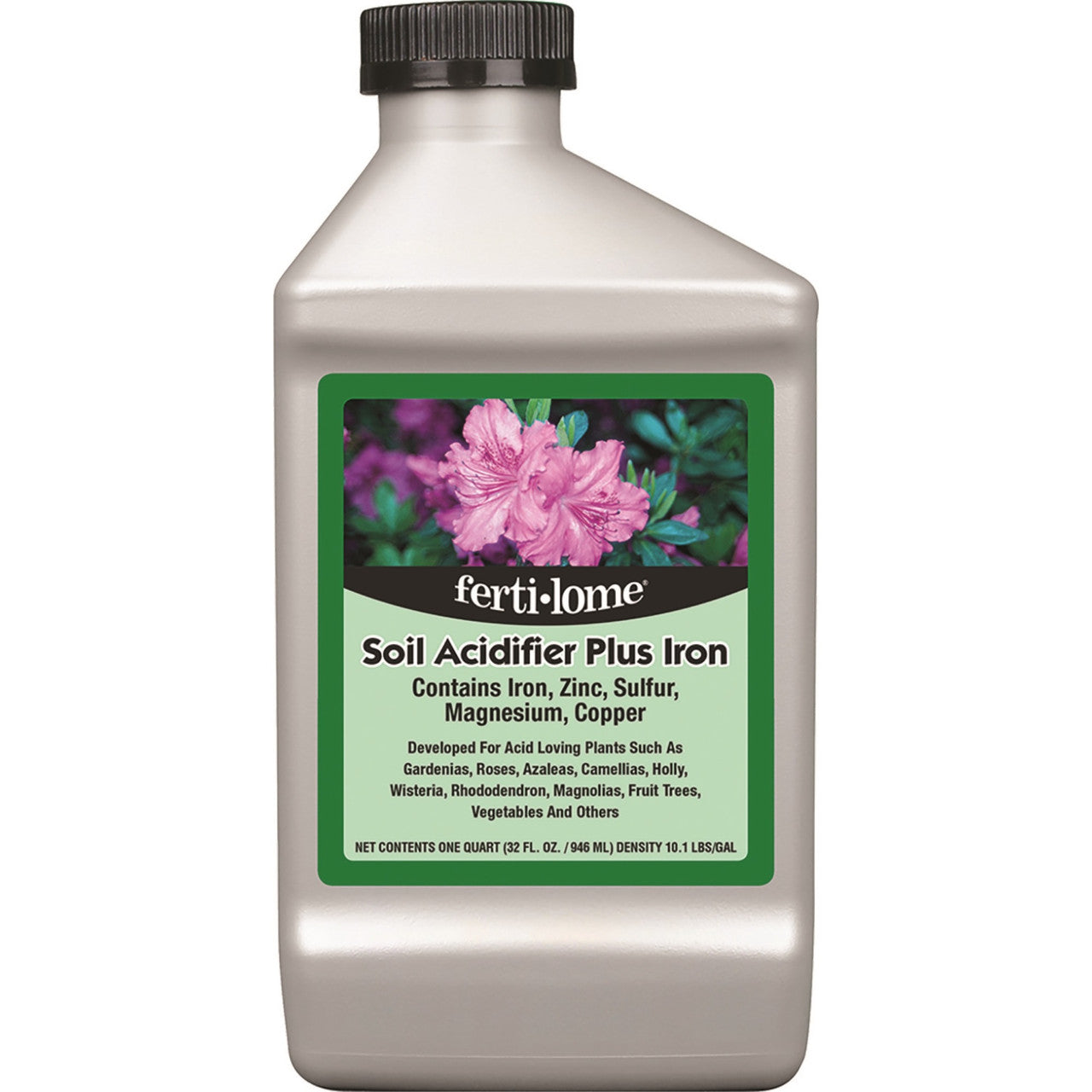 Ferti-Lome Soil Acidifier Plus Iron, 32 Oz is a key product for acid-loving plants, such as Azaleas, fruit trees, Gardenias, Holly, Magnolias, Rhododendron, Roses, and vegetables. Its potent formula contains essential trace elements like copper, iron, magnesium, sulfur, and zinc, all of which aid in reducing alkalinity and promoting healthy plant growth. With a net contents of 32 fluid oz/ 946 ML, this product offers an effective solution for improving the soil balance in your lawn and garden.