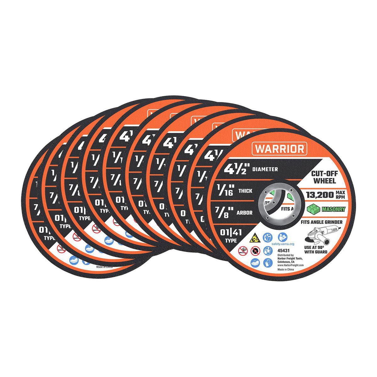 WARRIOR 4-1/2 in. x 1/16 in. x 7/8 in. Type 01/41 Masonry Cut-Off Wheel, 10-Pack