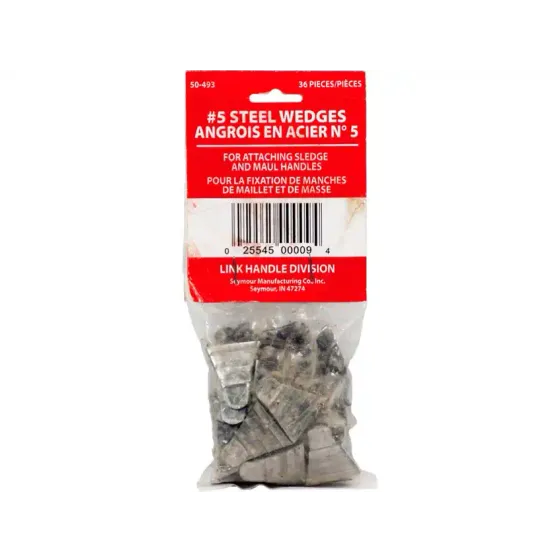 Handle wedges sledge hammer for no. 5 sledge hammers. 1 inch width by 1-1/16 height. Pack of 36 Corrugated steel for strong hold.